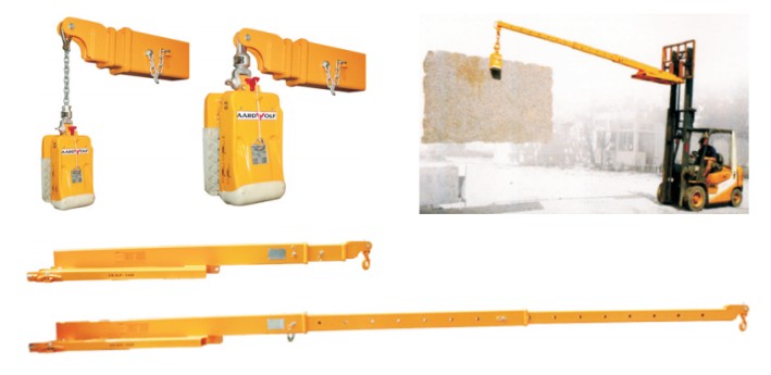 吊臂伸展的設(shè)計(jì)使其無法完全被拉出來。吊臂被牢固地安裝在叉車的叉子上,通過兩個(gè)固定在叉槽和限制鉚釘?shù)谋巢柯萁z固定,它為司機(jī)提供了多種用途。